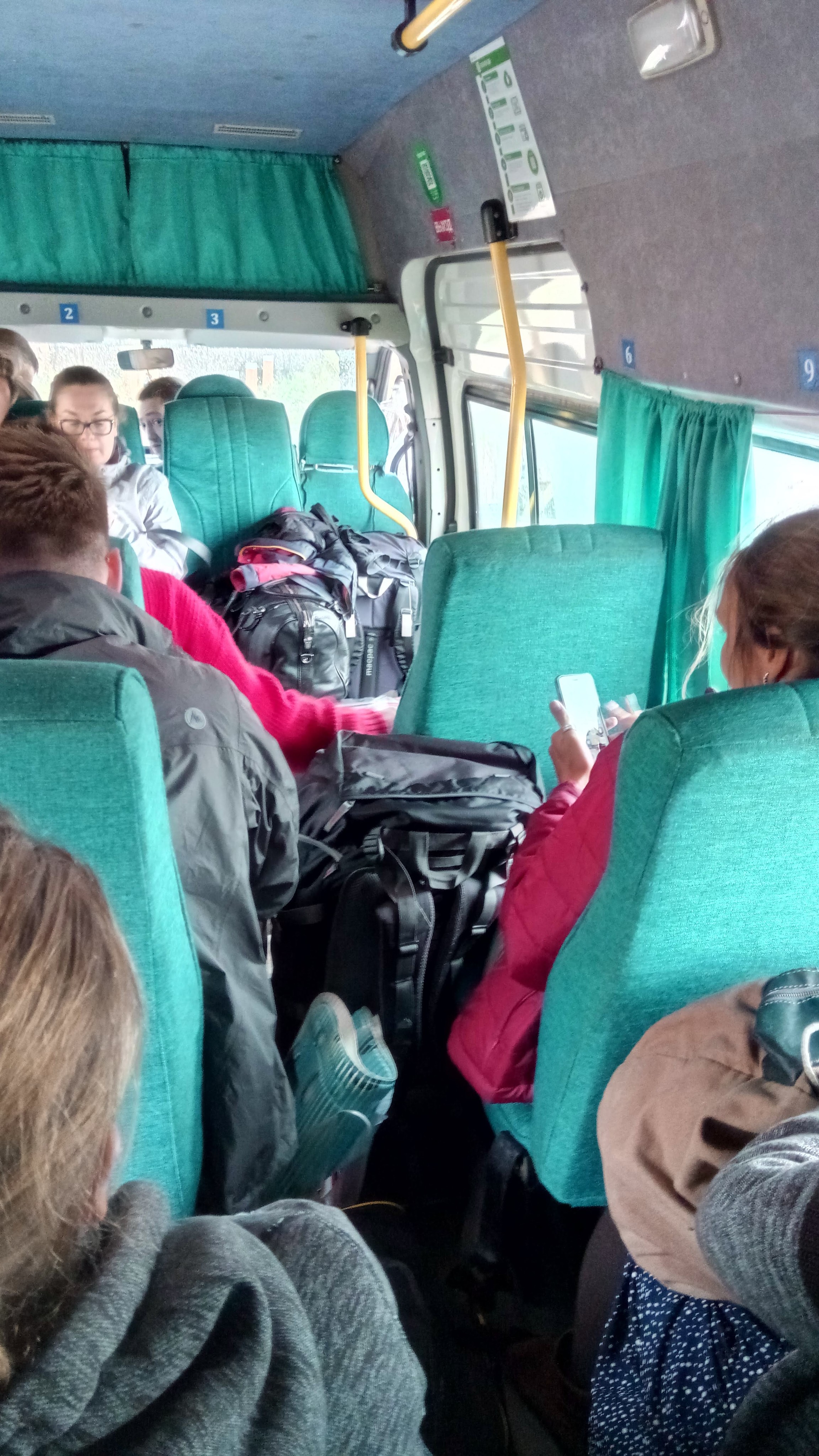 Le matin on s’est levé a 5h45 pour descendre du train. Aprés on a cherché une navette, on est resté 5 heures40 dedans ! Ca bougeait dans tous les sens, on décollait de nos sièges. Papa n’arrivait pas à prendre de photos.