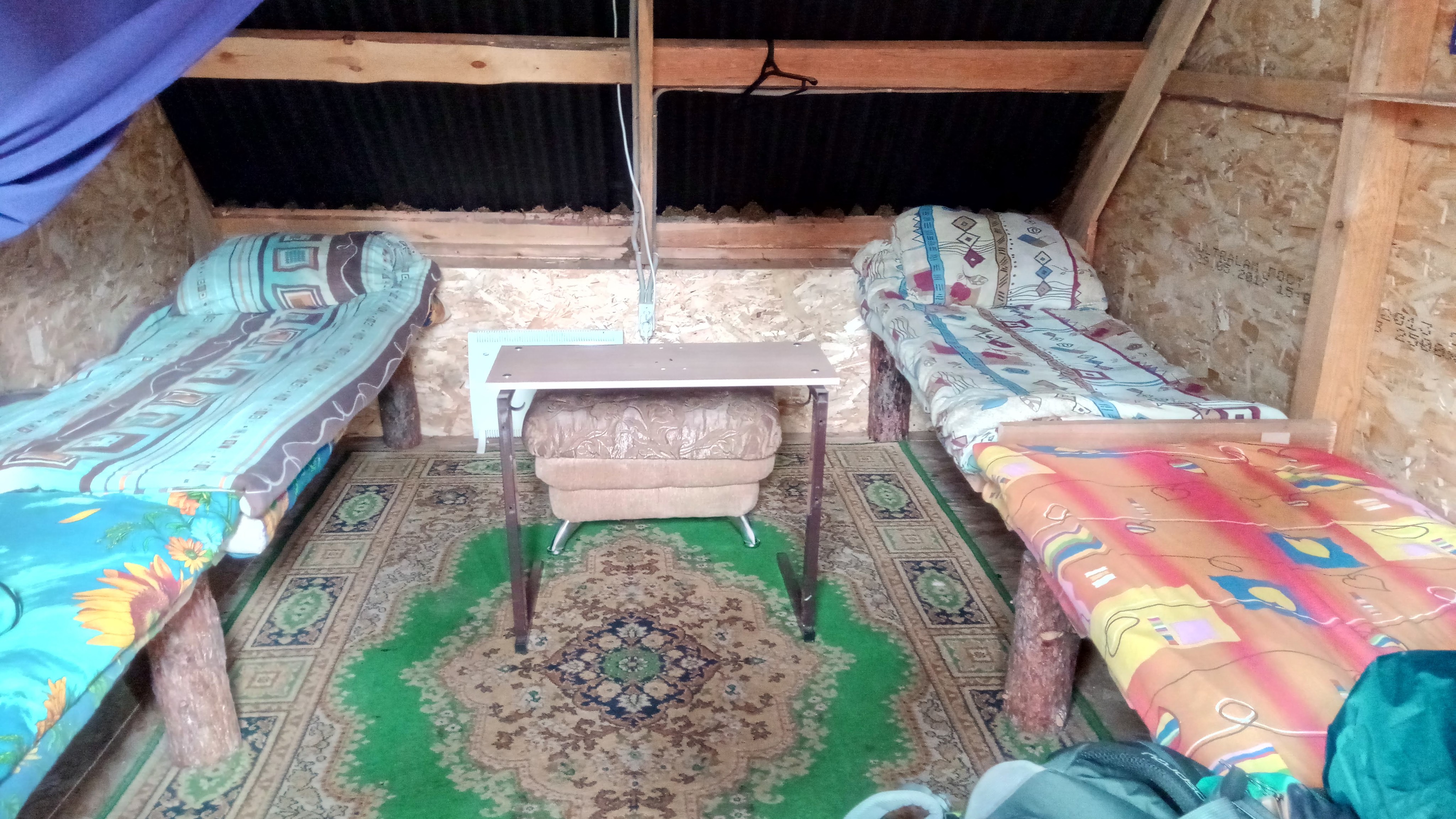 Aprés on est allé au camping, on dort dans une chambre en bois et aprés on a mangé.