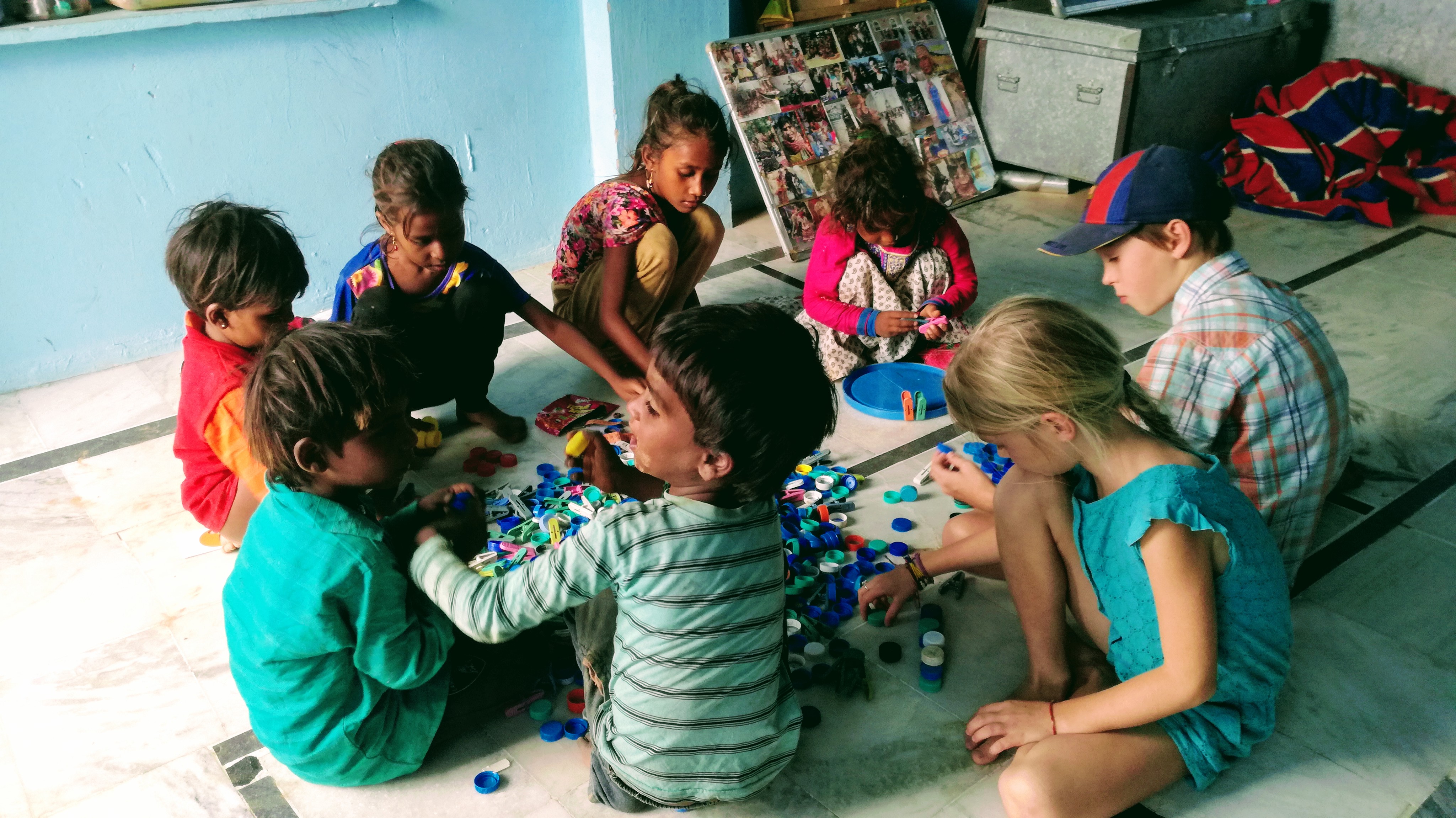 Dans leur école il n’y a pas de chaise et de table c’est bizarre 🙂 Ils nous ont montré leur jeux d’école, c’était des bouchons et des épingles à linge.