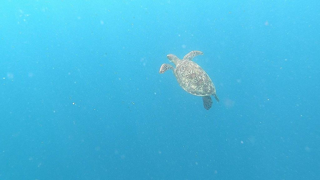 Alors, commençons : d’abord, nous avons vu des tortues rouges orangées et vertes, sur une petite île de 0.74 kilomètres carrés se nommant APO ISLAND.