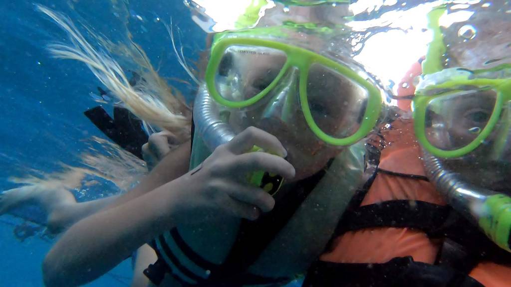 Nous sommes descendu dans l’eau, qui était chaude, nous avions à peine mis nos têtes sous l’eau que déjà, il y avait des requins qui avalaient leurs crevettes.